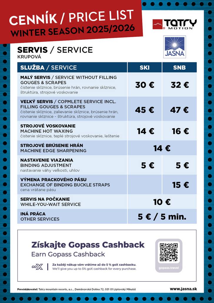 TATRY MOTION fully automatic service stations located directly on the slopes at Krupová, offer excellent servicing with the latest technology. Thanks to the fully automatic machine your skis will gain sharp edges, skids withou schratches, and stability on hard snow. Just bring your skis or snowboard after your day spent on the slope to our station you can pick them up professionally serviced in the morning.