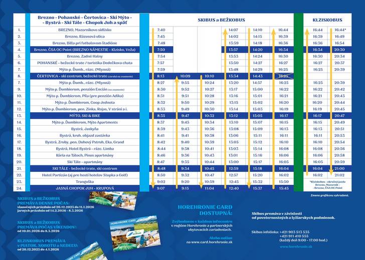 Aktuálny cestovný poriadok nájdete na stránkach: www.cp.sk, http://www.slovaklines.sk/