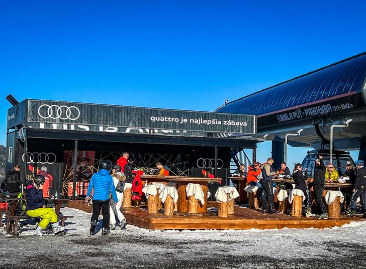 Pohodlně se usaďte do teplých kožešin a vychutnejte si pohár lahodného sektu. V náručí vstupní brány střediska Jasná, která nese jméno Jasná Centrum, najdete luxusní AUDI Crystal Bar, který je situován na severní straně Chopku ve výšce 1117 m n.m. v těsné blízkosti sjezdovky Biela Púť.