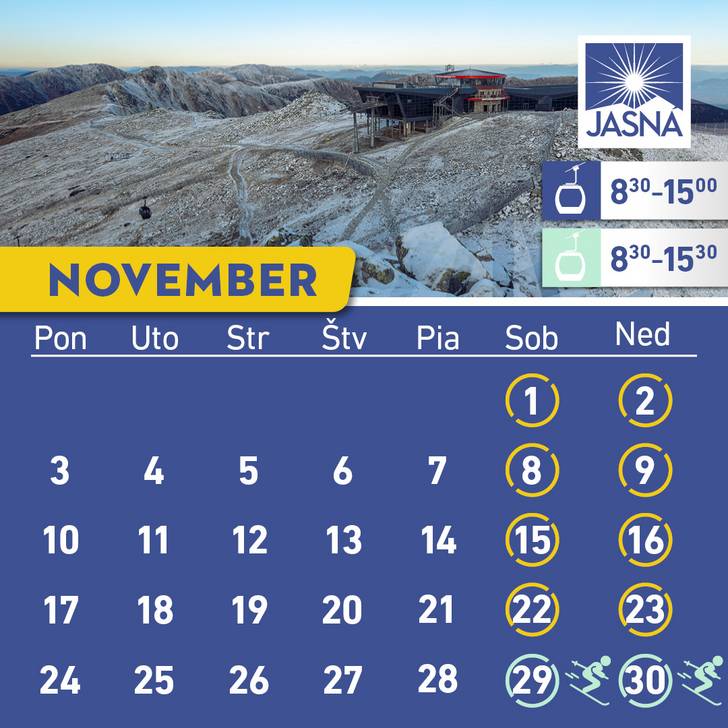 Prevádzku lanoviek je možné overiť na tel. +421 907 88 66 44, email: info@jasna.sk