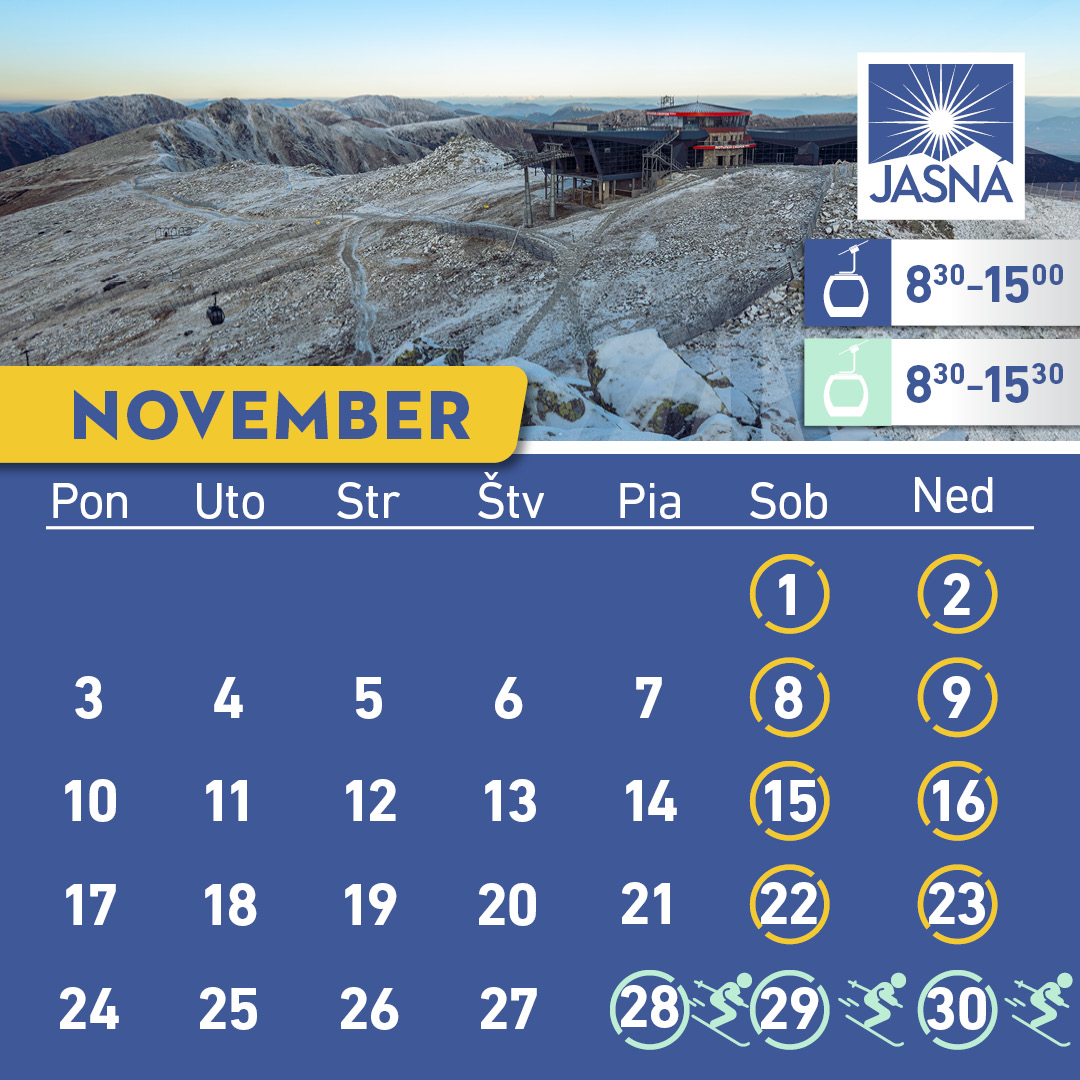 Prevádzku lanoviek je možné overiť na tel. +421 907 88 66 44, email: info@jasna.sk