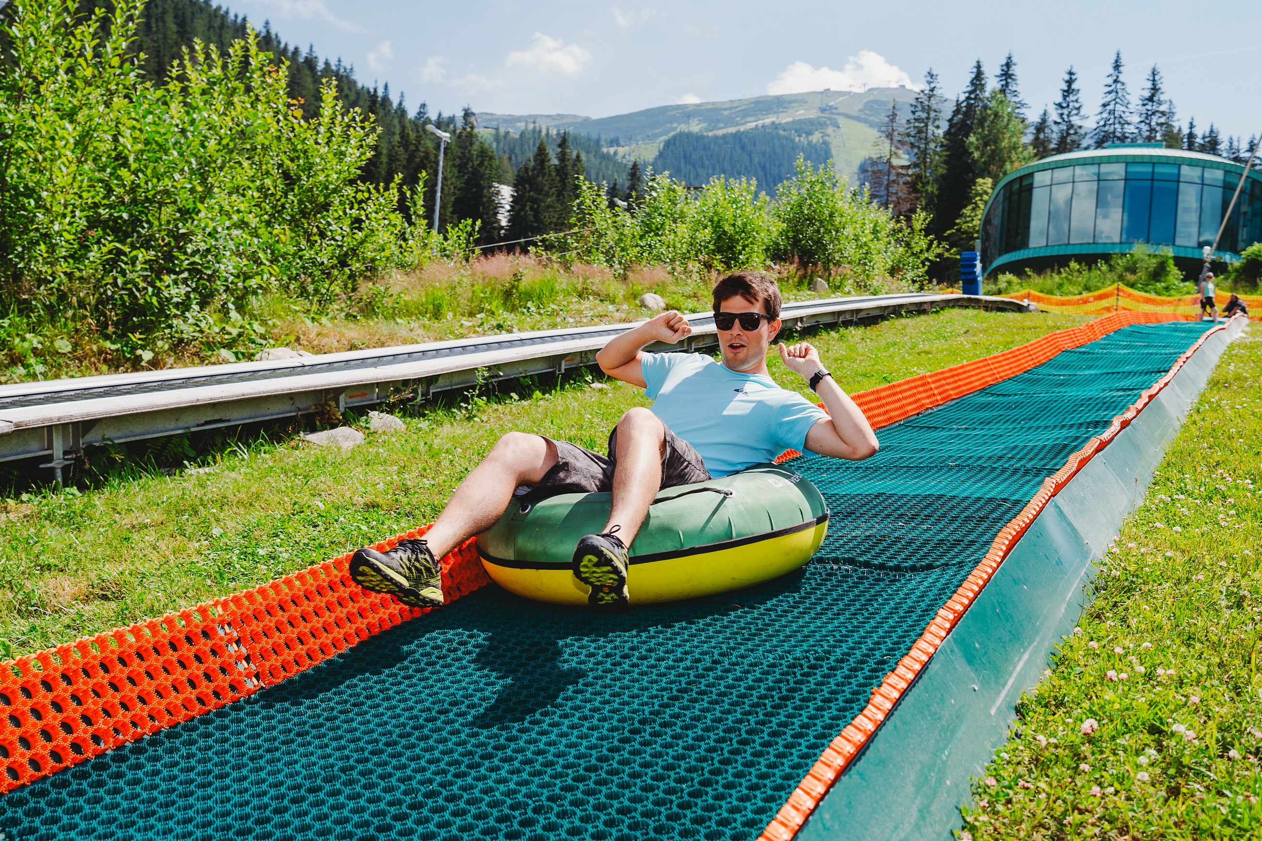 Discover amusing summer tubing in the area of Biela púť above the Happy end restaurant and the Crystal bar. It’s a great adventure on inflatable tubes sliding along a fast track. Take a magic carpet lift up the hill and enjoy a wild ride on the way down! Two tracks are open for you this summer!