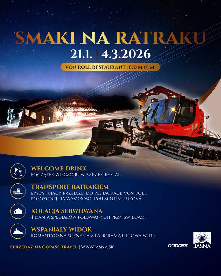 - przejazd ratrakiem na Lukovą do restauracji VON ROLL i z powrotem (20:15, 20.45, 21.15, 21:45)