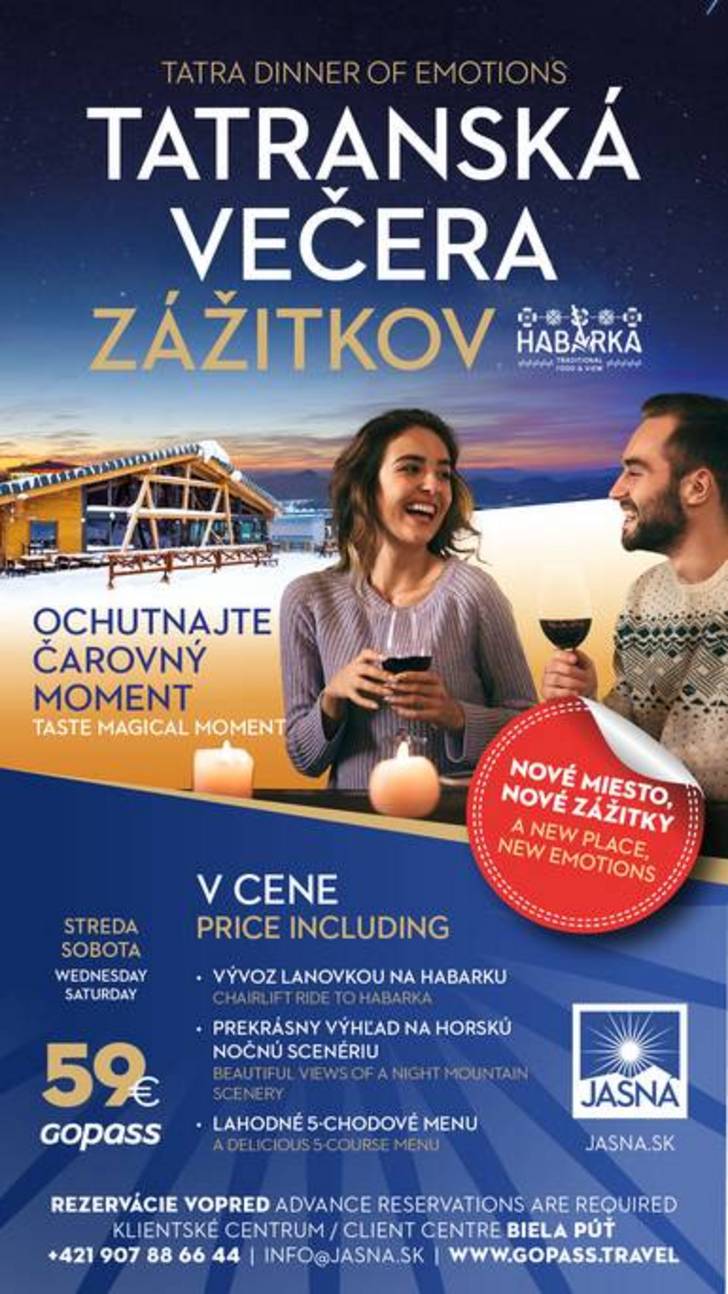 * Cena obejmuje: welcome drink w barze Apresski Lúčky, wjazd kolejką z BLúčok, kolację w restauracji Habarka (menu złożone z 5 dań + welcome drink)