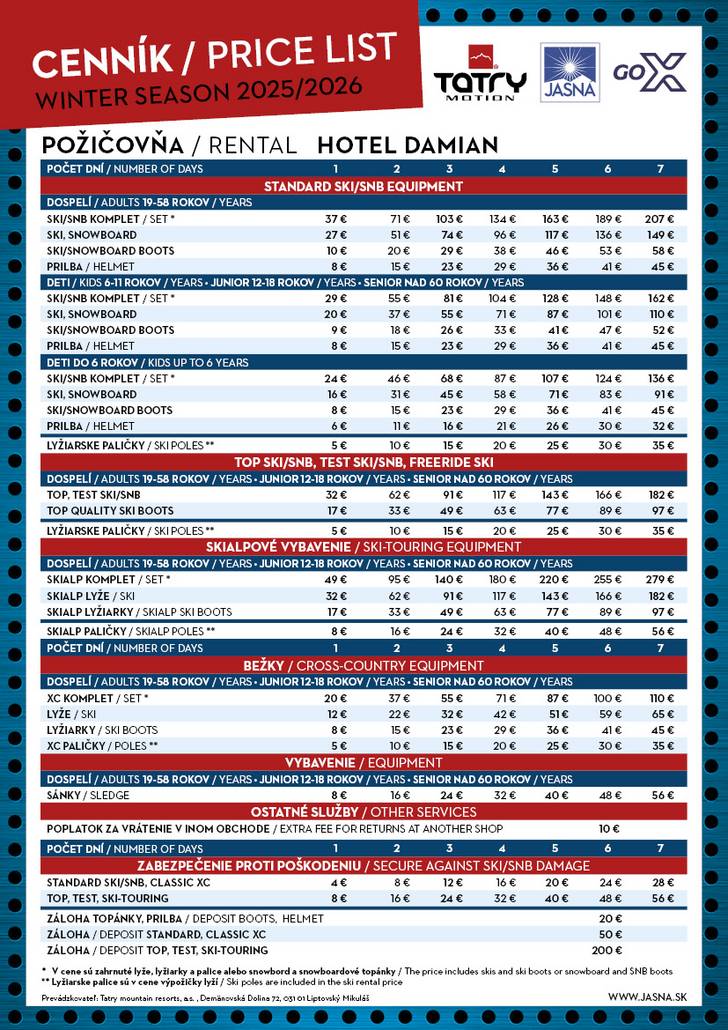 Shop & Rental Hotel Damian je priamou súčasťou Damian Jasna Hotel Resort & Residences. Nachádza sa na prízemí v južnej časti hotela.